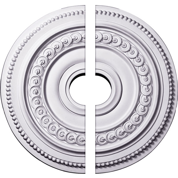 Endurathane Oldham Ceiling Medallion, 18"OD x 3 1/2"ID x 1 1/4"P (Fits Canopies up to 8 5/8"), Two Piece, Factory Primed