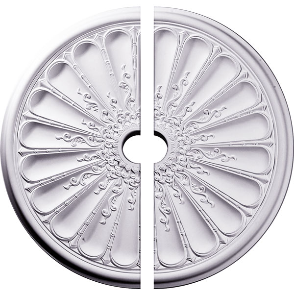 Endurathane Kirke Ceiling Medallion, 31 1/2"OD x 3 5/8"ID x 1 1/2"P (Fits Canopies up to 3 5/8"), Two Piece, Factory Primed