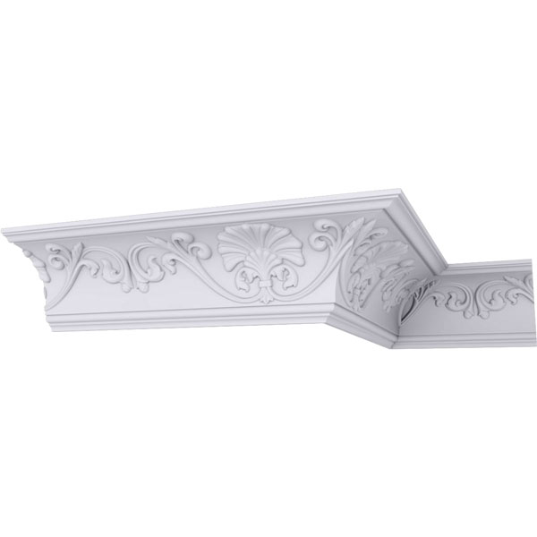 Endurathane Cornelia Crown Moulding, 6 3/8"H x 6 1/4"P x 8 5/8"F x 94 1/2"L, (18 7/8" Repeat), Factory Primed