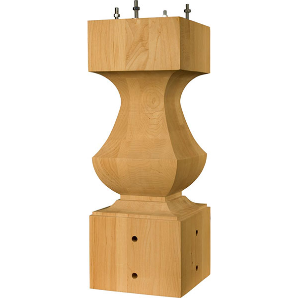 Seeking a modern yet transitional style for your dining table design? Our Transitional Table Pedestal is a must-see! It stands at 22" tall and has an impressive 8" width. The uniquely shaped pedestal center features square turned curves resulting in a fascinating silhouette. Incorporate this pedestal as a stand-alone piece or with the matching Transitional Pedestal Feet (Part #1174) to add subtle detail to your space. It works well in contemporary homes but is versatile enough to fit in to numerous interior design styles. We also offer this pedestal base with no holes (Part #11732) and a plain version with no holes and no hardware (Part #11731). For a full pedestal table base featuring the center and feet, grab our Transitional Pedestal Base Kit (Part #1175). This part is specifically designed and milled to fit with the Transitional Pedestal Feet.